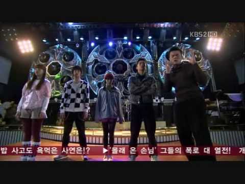 Mr. Yang tries to help the quartet choreograph a dance related to the theme of "birds" and tells them to imagine being a bird.